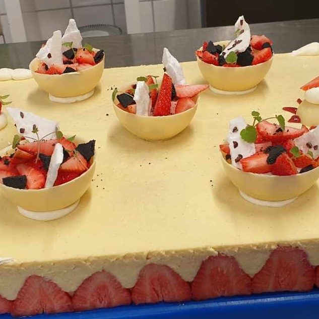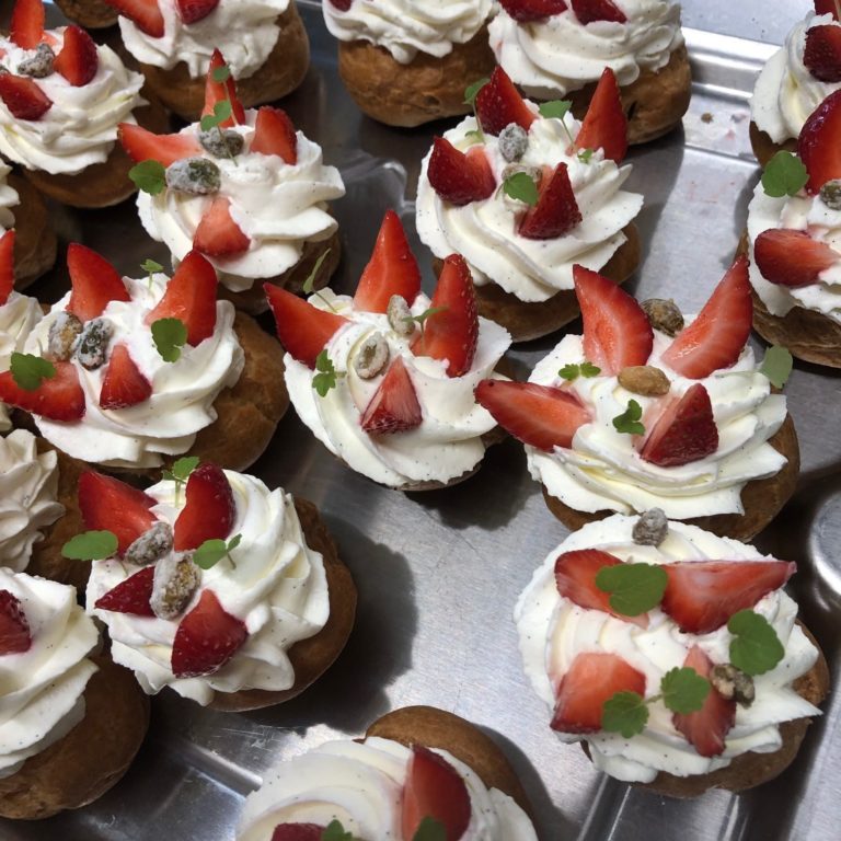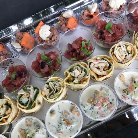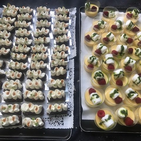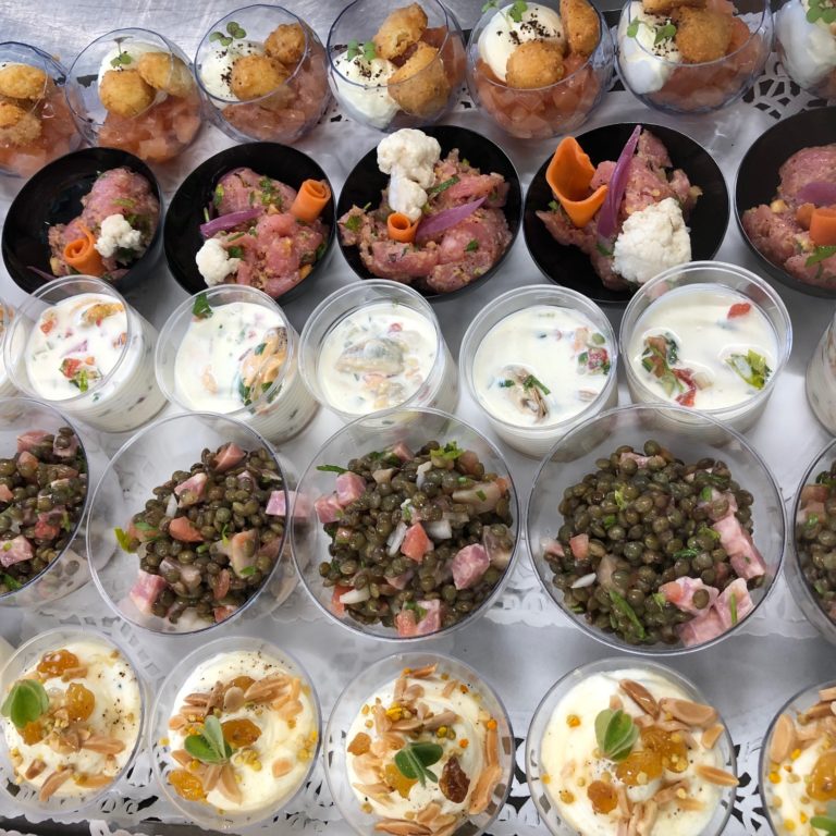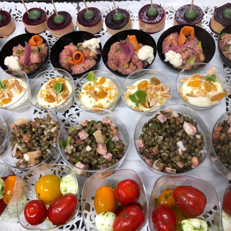 Nous pourrons vous proposer différentes prestations traiteur 100% frais et fait maison, à base de produits locaux et bio de préférence, à partir d’une quarantaine de couverts (cocktail dinatoire, buffet, gâteaux…).
